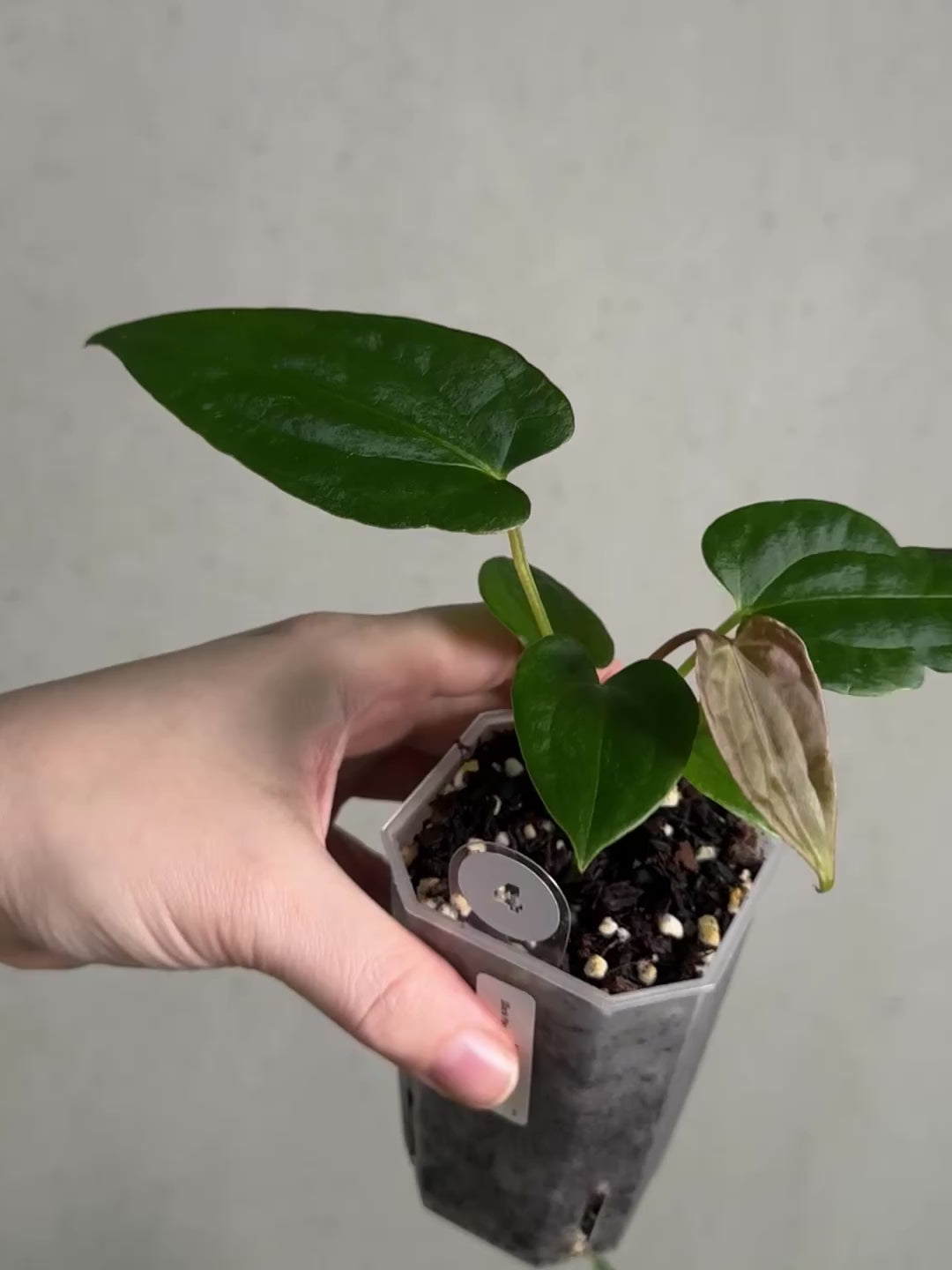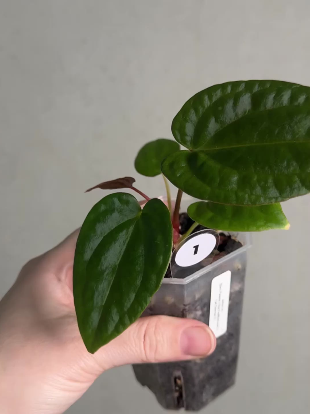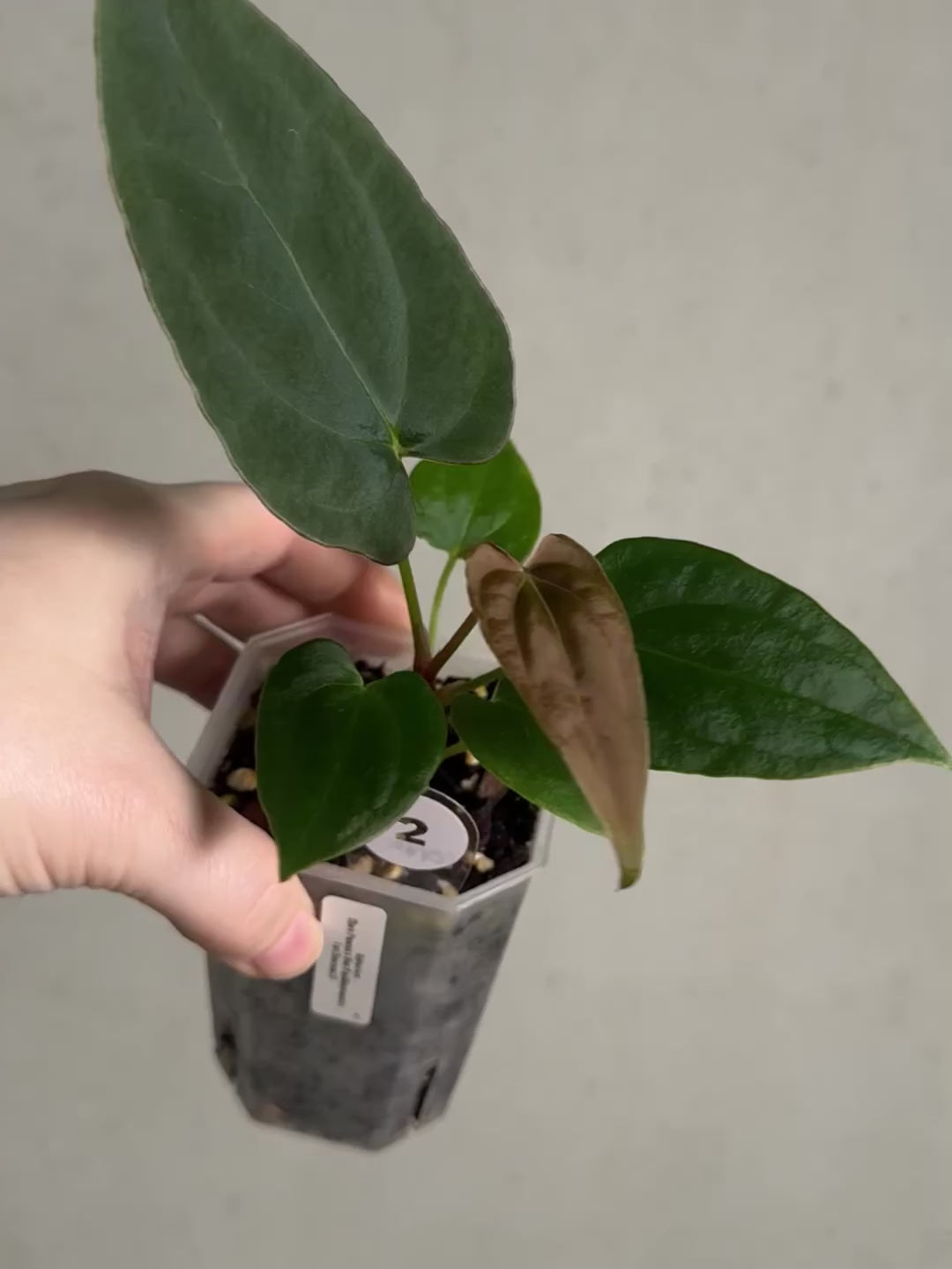 Offered are small size plants of a cross between Anthurium (Dark Phoenix x Blue Papillilaminum) and (Fort Sherman x self).