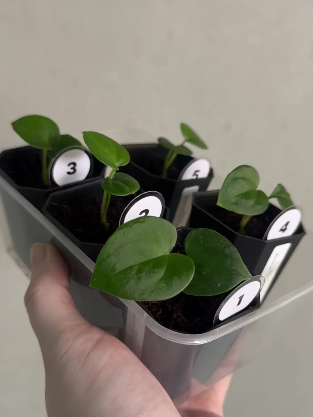 Offered are seedlings of a cross between Anthurium (Dressleri RG x Carlablackiae ‘Amanda’) and Red Vein Dark Phoenix.