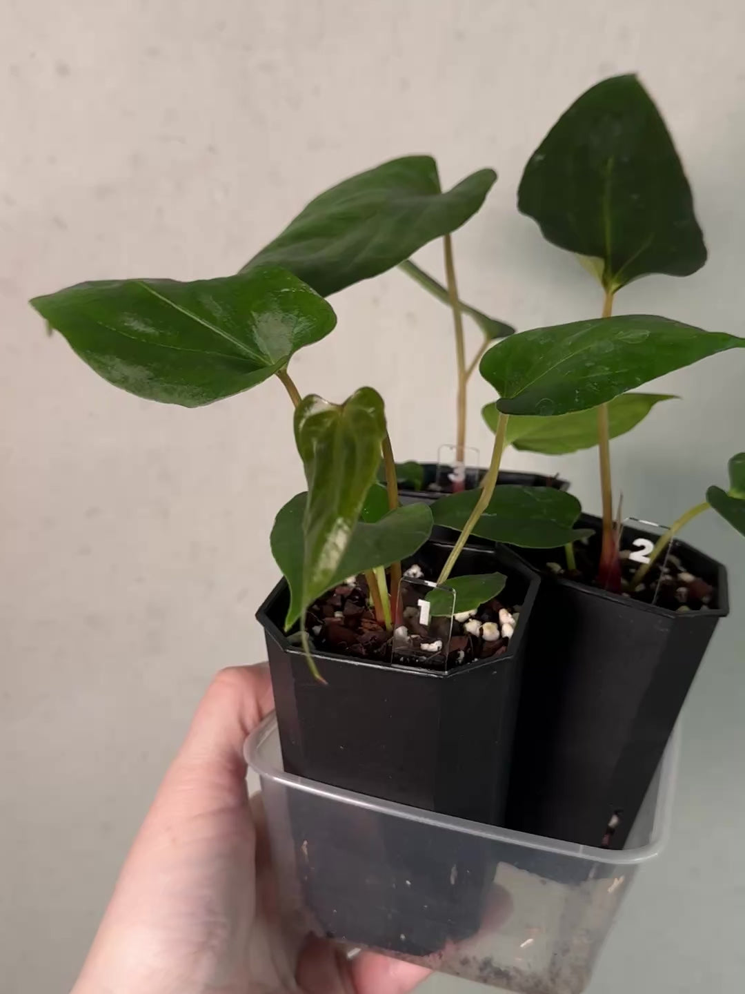 Offered are seedlings of a cross between Anthurium Fort Sherman x self and Ralph Lynam x Fort Sherman with a flat sinus.