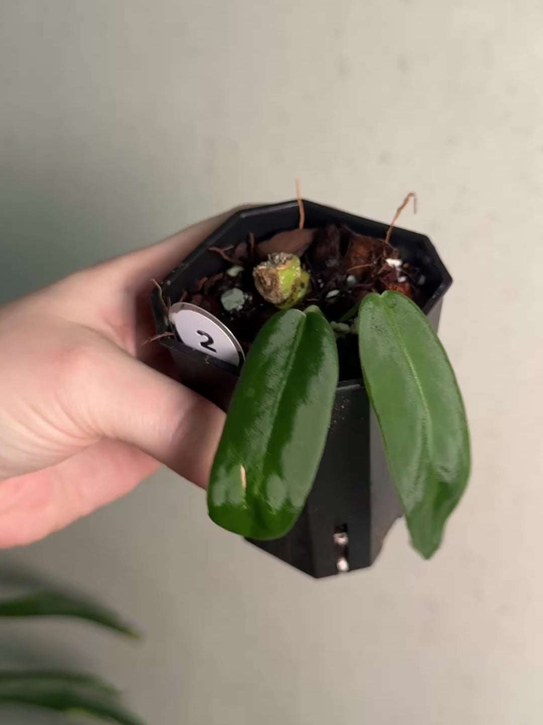 Note: The clones have developed their first leaves. Note that there are only some / minimal amount of existing roots from the original part of the stem. The new growth will start developing its own new roots once there are about 3-4 new leaves.