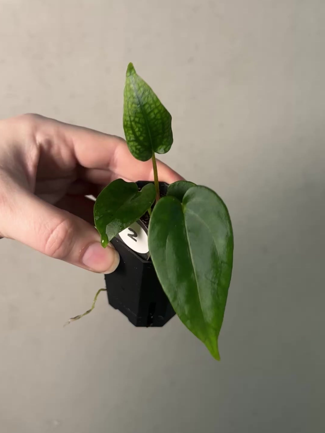 Offered are seedlings of a cross between Anthurium Papillilaminum 'Daniel' and Carlablackiae RD3 x FSxRL ‘Grim Reaper’. Very limited batch!
